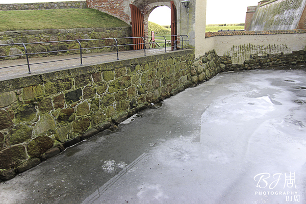 ▲請看一圈護城河都結成了冰,部分路面也有冰雪,走路要十分小心▼