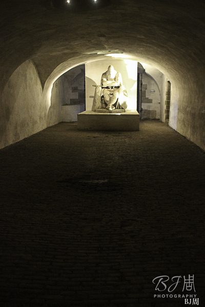 地窖最著名的景點是→霍爾格·丹斯克(Holger Danske)的巨大雕像。傳說他是一位勇猛、忠誠、智慧的民族英雄,被神秘力量將他「沉睡於城堡地下或森林深處」,手握劍與盾,會在丹麥遭受重大危機時醒來,保護祖國。