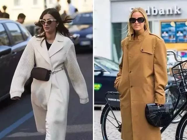 冬天的穿大衣的時候一般都會講大衣扣起來,這時候露出腰線會更顯高,可以系上腰帶或者今年流行的腰包,夠美夠時髦。▼
