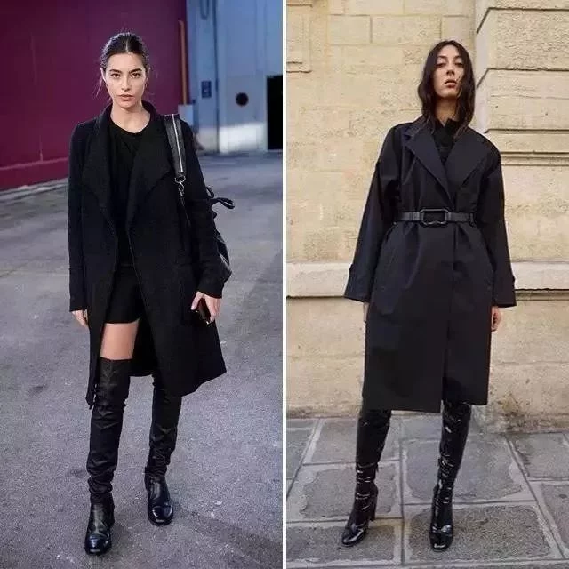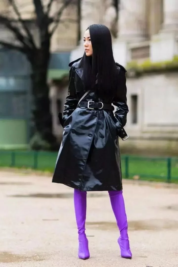yoyo cao也屬于小個子博主,穿上長大衣搭配過膝靴也會用一根腰帶來顯高,黑色和淺紫色的色彩對撞,搭配上顯得更有趣。▼