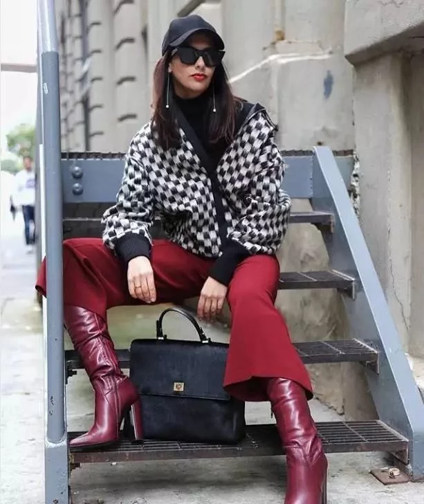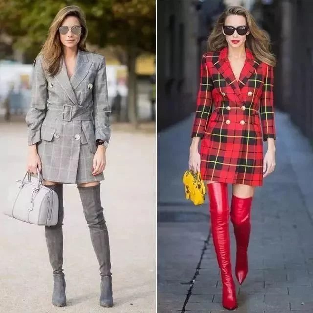 西裝外套搭配同色的過膝長靴,收腰的款式或者加上腰帶,很顯高,氣場也夠足!▼