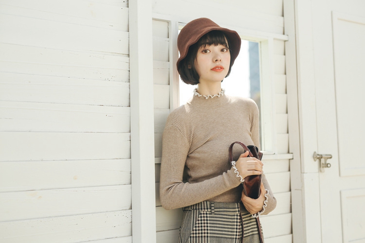 波浪花邊的領口與袖口和下擺都相互呼應,個性時尚。花瓣長袖的設計,時尚有型。優質的面料,加入毛毛設計,柔軟不束縛,上身十分舒適,更加保暖。