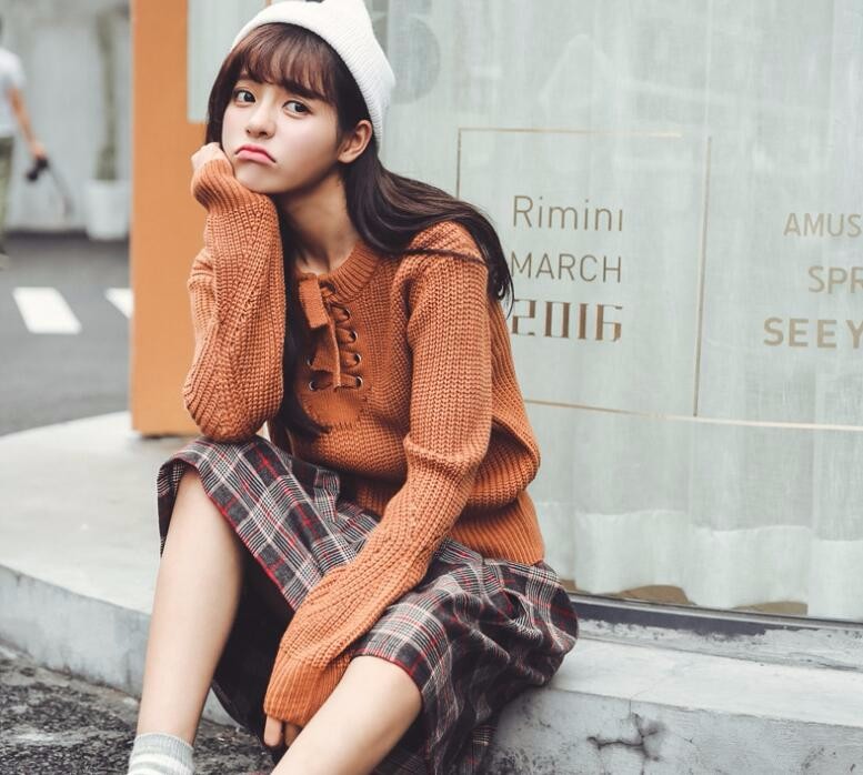 圓領系帶針織衫。精選優質面料,各種不同的紋理拼接而成,更加個性時尚。領口處的系帶處理,在細節處彰顯個性,設計感滿滿,時尚大氣,更加具有優雅氣質。