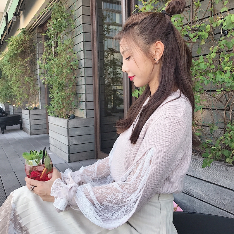 精選優質面料,上身柔軟舒適。豎條紋的肌理,十分顯瘦。袖子處的開叉蕾絲拼接設計,個性時尚。蝴蝶結的袖口裝飾,更加性感優雅。