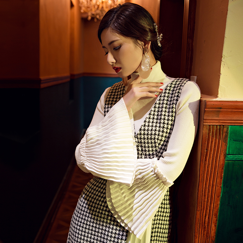 百褶喇叭袖設計,立褶整齊又立體,層次感更強,年輕更減齡。高領的領口設計,十分有氣質。高彈力面料,柔軟舒適,顯瘦不緊繃,更加舒服。