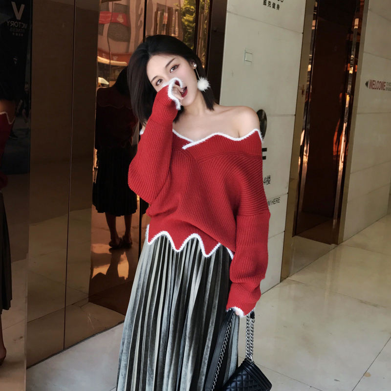 大V領的領口設計,前后一致,個性時尚,更加性感顯瘦。優質的針織面料,上身柔軟舒適。豎條紋肌理,更加顯瘦。附加脖套的設計,相互呼應,十分時尚。