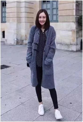 也可以搭配緊身小腳褲或者打底褲,再來一件同色系的黑色長款大衣~~