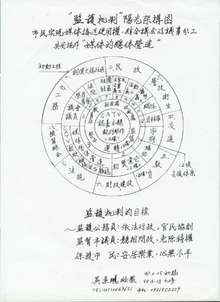 電子化政府的目標,是超越制衡機制的制衡,成就高度協調、效率掛帥、且有自清功能的有機體; 進而能營造「監護機制」,使公務員勇於依法行政,免於犯罪,使民代競相落實問政,捨此難存;使民眾安居樂業,心無不平。為政道之無他,「開誠心、布公道」而已,各擁半數人口的國、民兩黨,何不展開方寸之戰?