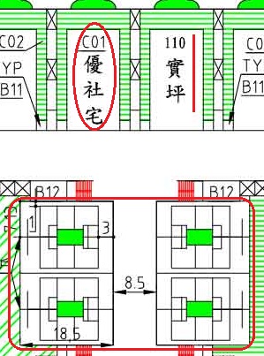 下面第一張圖是優社宅、每層32戶,第二張是大社宅、每層八戶,第三張包含23戶小社宅、10戶中社宅。