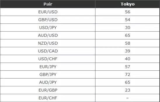 以下是亞洲交易時段主要貨幣對點數的平均波動情況: