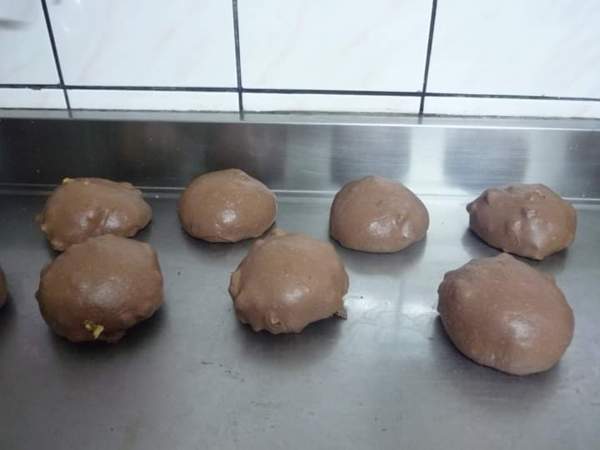 5、隔天發酵完成後取出麵糰,切割成所預作麵包的數量搓圓,中間發酵30分鐘