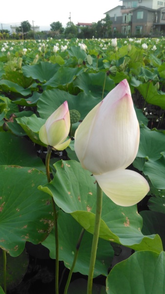 四天連假宜蘭到處是遊客,不想跟別人塞在一起,我們趁著黃昏,來到圓山大湖附近的荷花田,一片潔白的荷花,瞭望之餘,心情也隨之悠靜嫻雅,望著就足以洗滌一切塵憂。