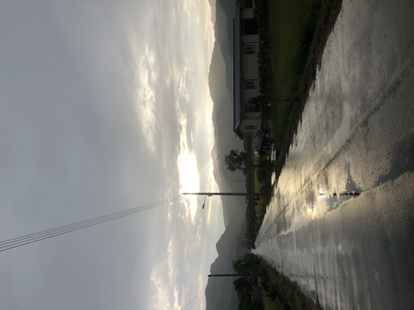 雨歇陽光微露,說不定彩虹出現,果真回程車上,彩虹矗立眼前,雨後彩虹,彷彿訴說,終有美好如彩虹出現天際。