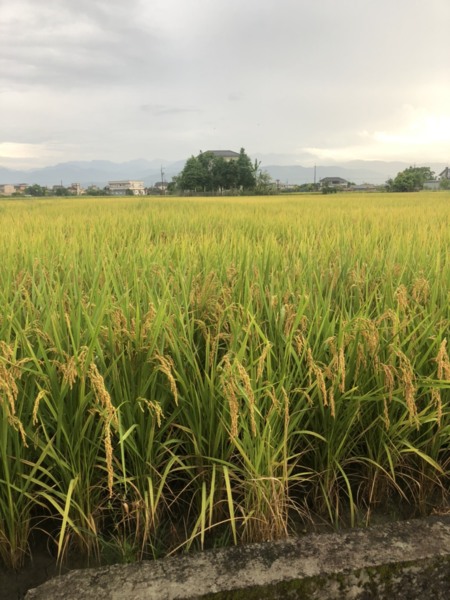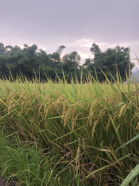 看見光禿的樹幹,兒子說這是芭樂,果真看見小小的芭樂長在樹上。隨處的植物,一一打開我們的興致,一畝一畝金黃稻穗飽滿低垂,路旁一排的松針樹、整園的火龍果樹、龍眼樹、落羽松,隨著漫步,不同的景緻變化在眼前。