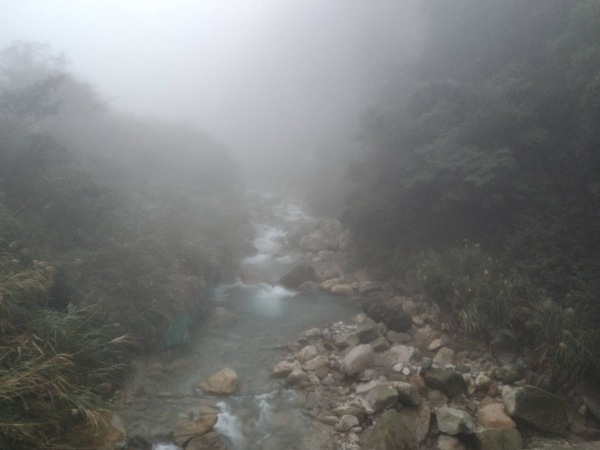 我們坐著歇息片刻,感受霧裡另一番情境°時間卻也不容我們停留太久,便思考著回程安排°擔心外子在這迷霧中走回去,便提議一起搭車回上磺溪°跑去詢問旅客中心,便啟程往公車站°順利的搭車來到陽明山站,以為再搭上1717,便可回到上磺溪。但因路線不明,我們等錯方向,而錯過了車班°竟從下午四點多一等,已快一個多小時,外子趕緊進去車站旁的7-11詢問班車狀況,結果竟然要等到晚上八點多車子才會來°正討論著怎麼面對,在慌張之中,結帳的店裡客人,問我們要去哪裡,說她正要過去這停車場的附近,可以順道載我們°但一上車才知她誤以為停車場在附近,我們說是在陽金公路上,離這裡還一大段路。但巧的是,她居然同是宜蘭人,真是有緣的巧妙安排,所以他們仍繞路,帶我們回到上磺溪停車場。真是無法算計的巧合,遇著貴人相助,解決了我們棘手的問題,只是讓我們留著無以償還的愧疚之心。