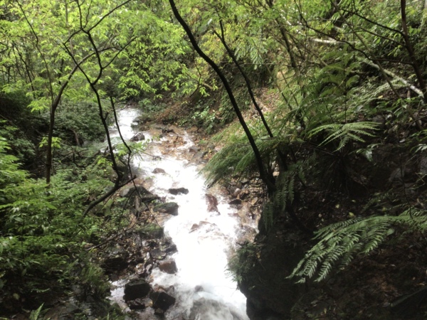 不知走到何處,發現歧路,往左走,是一條山中渠道,外子說,如果我們沒走進來,怎麼會發現這別有洞天,好似桃花源記般的另一世界,「妳說這不是很值得」,這句話好似一路走來,外子一直說著的話。外子先去探路,發現這水渠旁的空間太小,無法沿著渠道往前通行,我們只好又折回來。