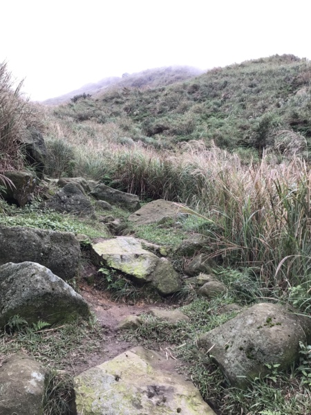 有一陣子路況稍平順,能這樣輕鬆的漫步走下去,挺好的°但很快就改變了,開始走在顛簸的路,踩在粒粒的石頭上,步步都不好走°這時外子便說,「這彷若人生, 雖然一路走來,經歷各種的路況,但沒走進來,怎麼看到如此驚奇的山景風貌。人生不在乎結果,而是過程中的體驗,才是最為珍貴的。」更說我可驕傲的告訴友人,我從陽金公路爬山走到擎天崗。問我,若是友人想來,是否願意陪著再走一趟。心想,現在能走到擎天崗已是最大的能耐了°