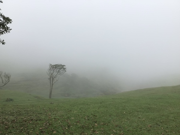 離擎天崗越來越近,已處處有芒草的味道,越來越期待,這久違的山景了,年輕時的記憶,模糊中的美好。哇!終於走到擎天崗了,看到四周的大草原,雖然已不同以往,也還能感受一些些微微的氣息,是過去曾有的°但這時,力氣幾乎已用盡,儘管想再環繞草原道路,可惜無力再走,才稍一歇息,山中雲霧便起,此刻景色瞬間籠罩在迷濛中了,還未拍照,草原已是濛濛朧朧看不清了。