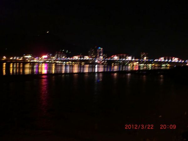 淡水河左岸1.5公里處關渡大橋方向夜景。