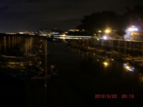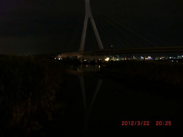 先前曾騎到八里台北港,在跨越台64線有延伸一條自行車道,不知通往何方?想說就利用此機會探探路。當然,決定了就走!一路上微風徐徐,夜空中點綴幾顆星斗,對都市而言已屬難得,映照著自行車道上零星的車友,感覺偌大天際唯有知音共鳴。