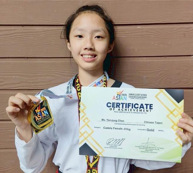 跆拳道選手陳彥蓉是嘉義縣永慶高中學生,日前代表中華台北,遠征馬來西亞參加「2025亞洲青少年跆拳道錦標賽」,憑藉堅強實力與穩健表現,在青少年女子組51公斤級賽事中一舉奪金,當陳彥蓉獲頒獎牌、國旗歌響起那一刻,來自台灣的選手和代表團都深受感動與光榮,陳彥蓉強調,能代表台灣出戰、奪金,是她多年努力的成果,也是極大的榮耀,她會繼續不斷精進,讓世界看到台灣跆拳道的堅強實力。