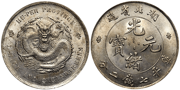 的雙龍圖案,這種圖案很少出現在鑄幣上。和先前湖北省發