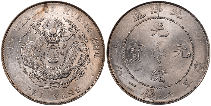 6. 光緒三十四年(1908)北洋造光緒元寶庫平七錢二分銀