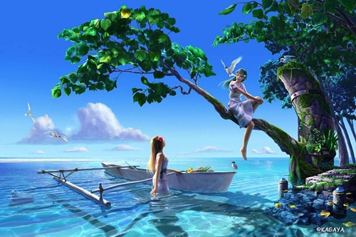 KAGAYA筆下的少女美麗純潔,筆觸細膩鮮艷,就像水晶般散發著清澈及誘人的光澤。