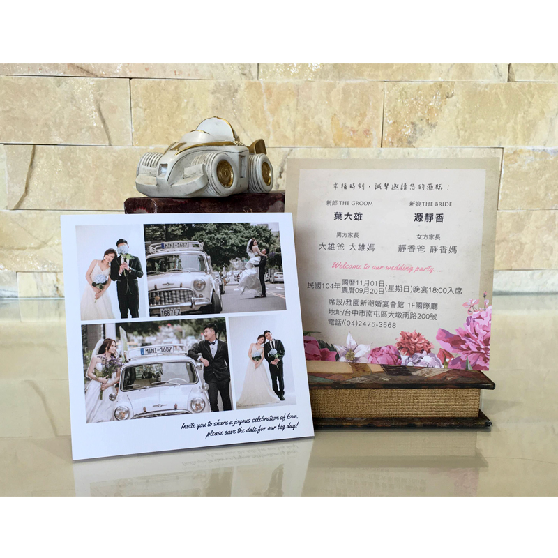婚卡在螢幕或成品的呈現上,多少都會有色差等現象。我們會盡力將色差調整到最低,但不能100%保證顏色一定和樣本或者螢幕相同。若非常介意色差的客人,建議您訂購前務必考慮清楚,以避免誤會唷~