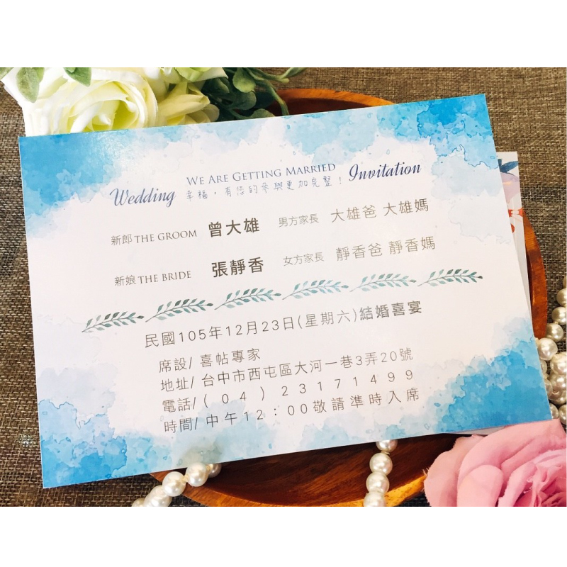 婚卡在螢幕或成品的呈現上,多少都會有色差等現象。我們會盡力將色差調整到最低,但不能100%保證顏色一定和樣本或者螢幕相同。若非常介意色差的客人,建議您訂購前務必考慮清楚,以避免誤會唷~