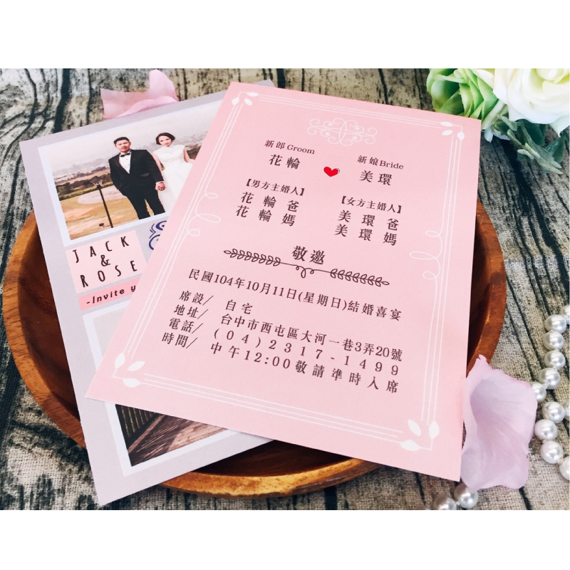 婚卡在螢幕或成品的呈現上,多少都會有色差等現象。我們會盡力將色差調整到最低,但不能100%保證顏色一定和樣本或者螢幕相同。若非常介意色差的客人,建議您訂購前務必考慮清楚,以避免誤會唷~