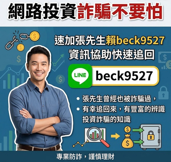 張先生曾經也被投資詐騙200多萬,有幸遇到貴人相助追回大部分錢財,有同樣經歷的可以聯絡張先生尋求幫助:beck9527