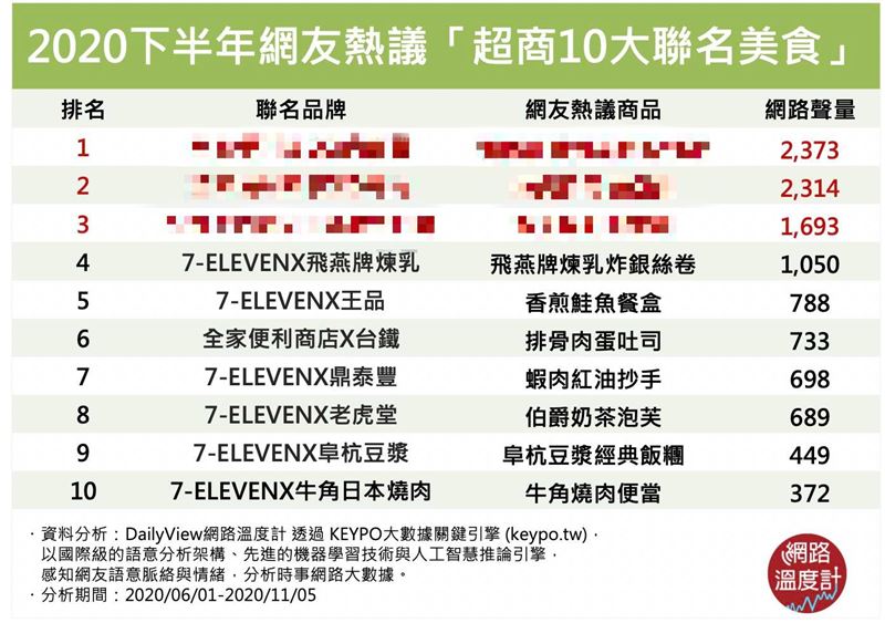 近期超商與各式品牌跨界合作,開發創意料理,從點心、飲品、鮮食,什麼都能聯名,讓人可以在超商就吃到燒肉店、飲料店、餐廳的滋味,今天DailyView網路溫度計就透過《KEYPO大數據關鍵引擎》來看2020下半年有哪些網友熱議的超商聯名品牌吧。