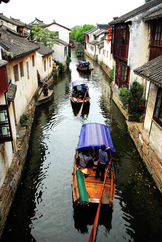 在水鄉澤國的蘇州,周莊是典型的小橋、流水、人家。畫家吳冠中撰文說:黃山集中國山川之美、周莊則集中國水鄉之美,在海外稱周莊為中國第一水鄉。古鎮內河道分布成井字型,居民隨著河道的流向在兩旁築屋而居,橋樑建於元、明、清時代橫跨在河道兩岸,共有14座。周莊最為著名的景點有富安橋、雙橋。富安橋是江南僅存的立體橋樓合壁建築;雙橋則由兩橋相連為一體,造型獨樹一格與眾不同。