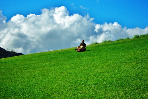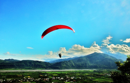 花東縱谷來來回回走過多少趟也不記得了,總是讓人愛不釋手,每一次旅行都令人難以忘懷,這一回有緣份來訪鹿野高台,位於鹿野鄉永安村及龍田村,由於境內水源豐沛,天候、土壤均佳,為東部重要的產茶地,其中「福鹿茶」更是其中佼佼者,由於地勢居高臨下,視野甚佳,可鳥瞰花東縱谷及龍田河階地形的農田景緻,也是臺灣著名飛行傘`滑翔翼場地,此次雖是非假日還是有為數不少的旅客到此觀光,一般遊客飛行一趟要2500元,會員都是自己有備而來,馬上就有人重裝上陣,竟然是一位女生超有膽量與自信,因為飛行台是個大斜坡,凖備妥當就等待教練的口令,揚起傘乘風而去,翱翔於天際,現場響起如雷的歡呼聲,陸續上場全都是女紅妝,真是不讓鬚眉令人刮目相看,她們乘著五顏六色翅膀,在穹蒼裏隨著熱氣流上下盤旋好不愜意溶入在自然圖畫裏,從藍天中俯瞰的視野,相信又是幅美不勝收意想不到的意境.