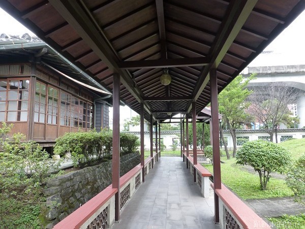 綠籬後面是典雅中國風味的木造迴廊