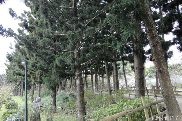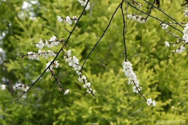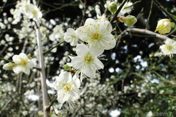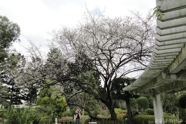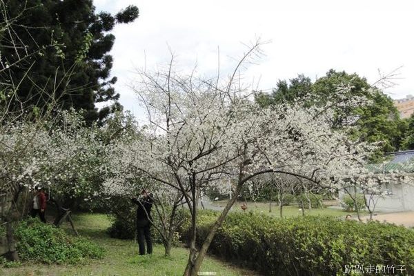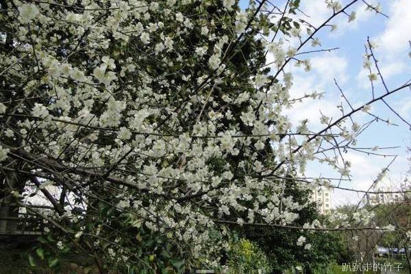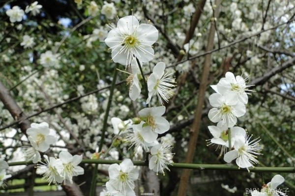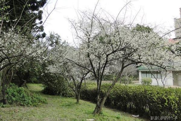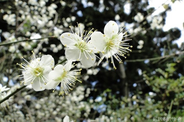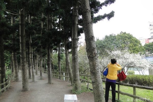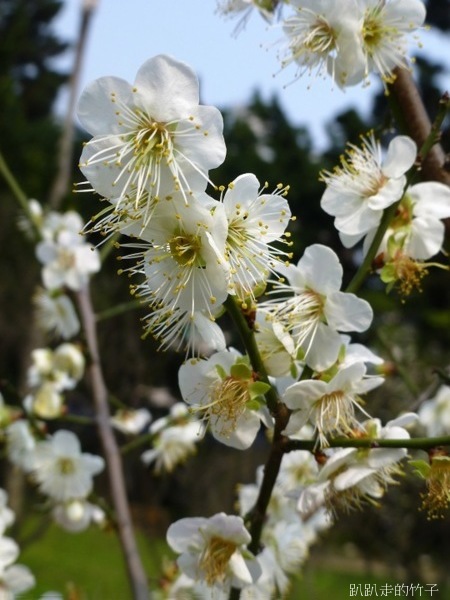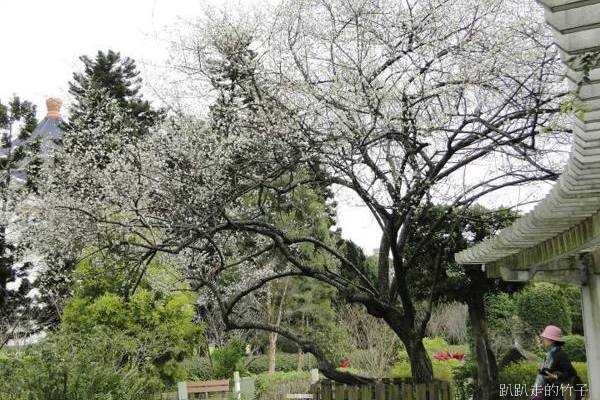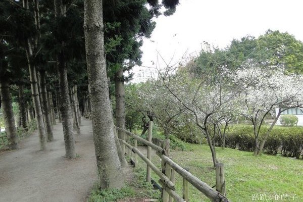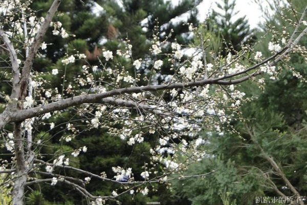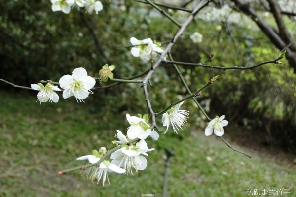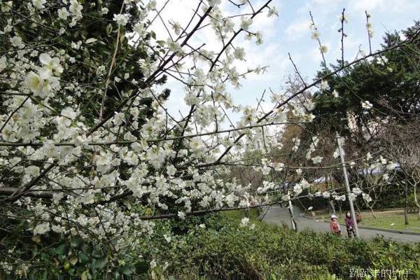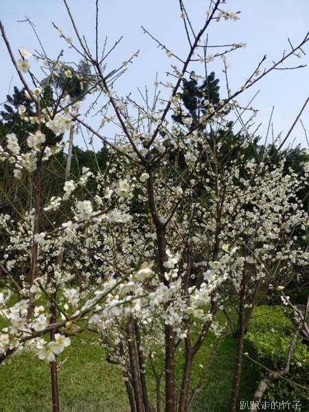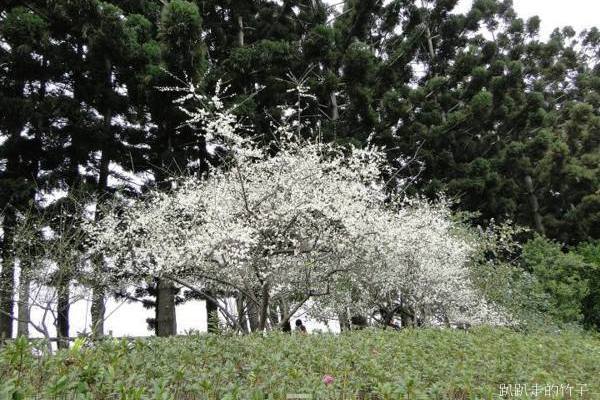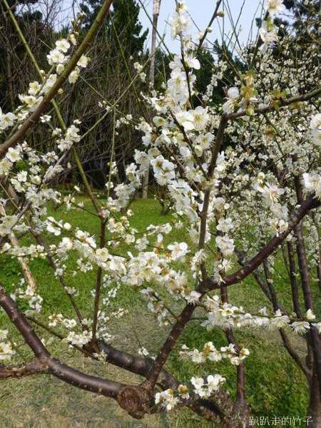 南洋杉步道斜坡草地上幾棵長得不高的梅樹,遠遠望去像覆上一層白雪一般