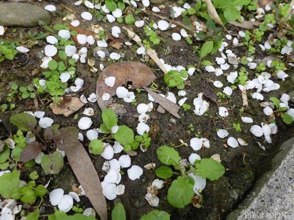 風吹來,白色花瓣飄落滿地