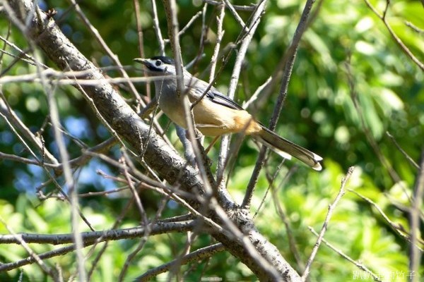 突然一位拿著手機拍的小姐跟我說「那邊有一隻"白耳畫眉",妳趕快去拍」,我循線找到了那隻都市裡難得一見的白耳畫眉,牠卻很不安份的飛來飛去,因為牠是很怕受到驚嚇的鳥類,一看到有人類走近就很快飛走了,我只能隔著遠遠的拍,而且相機不是很好,因此拍得不成功,您就加減看囉。