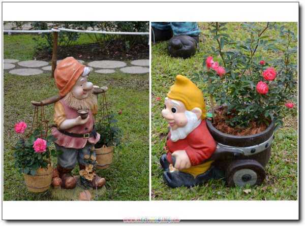 周圍的幾個裝飾小矮人是忠實勤奮的園丁,有創意!
