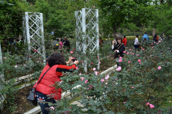 士林官邸一向是許多遊客踏青賞花的好地點,也是陸客必訪的景點,戶外的玫瑰園培育了適合台灣氣候的150餘種玫瑰花,共有3000餘株,拍照當下不時聽到導遊向大陸遊客說明「因為宋美齡女士喜愛玫瑰花,所以工人種植了這麼一大片玫瑰園....」。