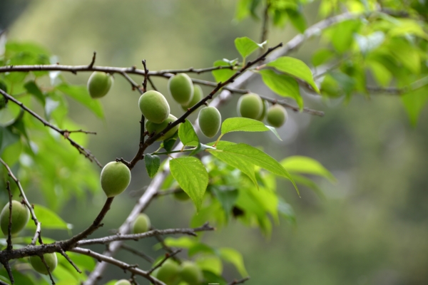 記得一月份園裡的梅花綻放時,梅樹葉子全落光了,一轉眼深深淺淺的綠葉成蔭,而一顆顆梅子也在枝椏上紛紛探出頭來。