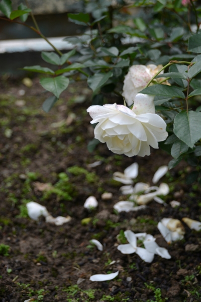 ↓我個人最喜歡這張,盛開的白玫瑰凝視著地上散落的白色花瓣