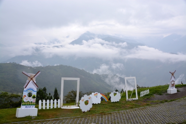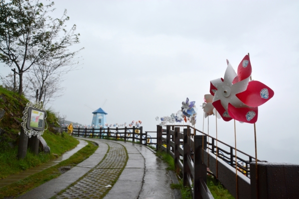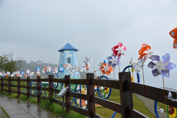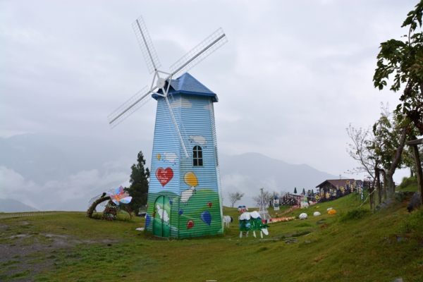 穿過清境農場的木棧道,一個人來到小瑞士花園,看看時間,可能不允許我買票進去觀賞,其實入口和附近的幾個風車做成的造景就很浪漫很吸引人了,很多情侶和親子都在這裡拍照,我也只能搶拍了。