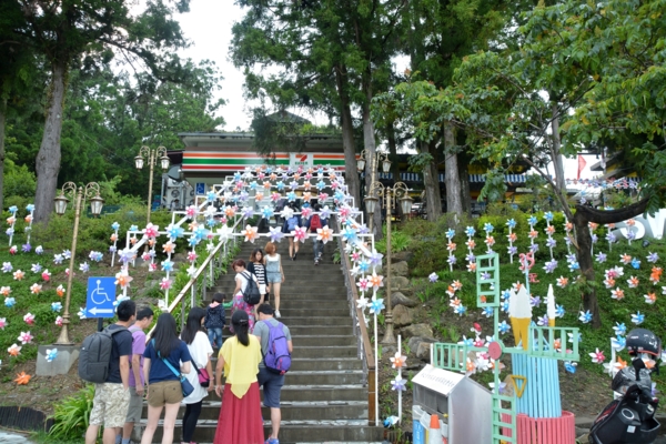 清境小瑞士小7的入口階梯和兩旁的草地上也佈置了好多彩色風車,夠夢幻的!