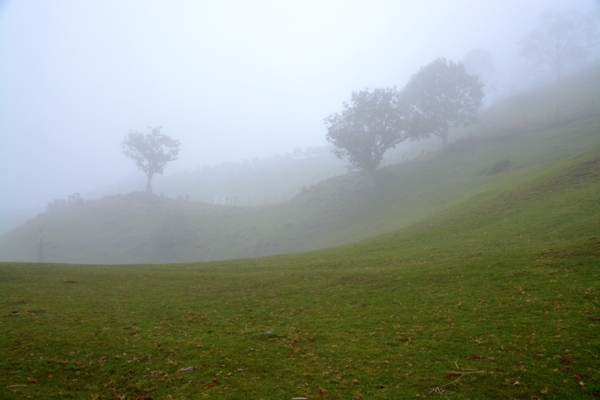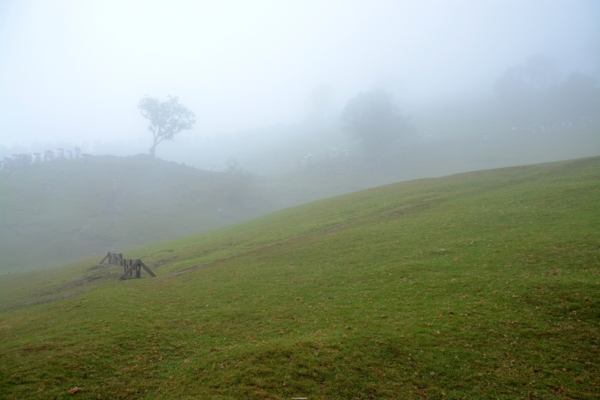 不想把時間浪費在觀賞綿羊秀,一個人撐著傘離開熱鬧的人群,天空依然飄著不小的雨絲,雨霧籠罩著海拔1800公尺的清境,整個青青草原矇矇矓矓,高大的樹木孤立在柔美的草原弧線中,遊客三三兩兩點綴其中.....好美,好喜歡這樣的氛圍!