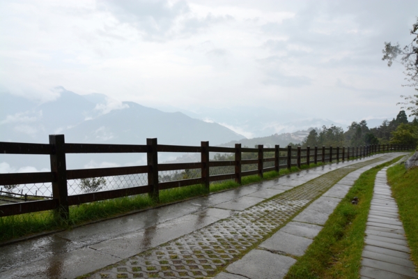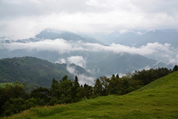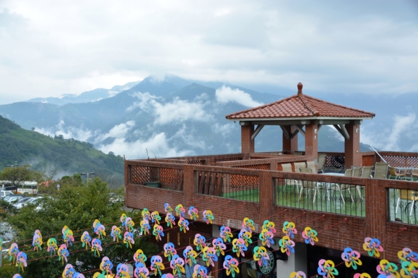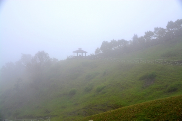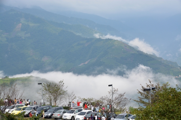來到對面的國民賓館,雨停了,腳也走累了,想要在星巴克喝杯咖啡休息一下,因為等一下還要走回去遊客中心「法國小鎮」集合,怕時間來不及只好放棄了。此時停車場對面的山巒出現好美好美的雲海,好像給了我疲勞的身心最美最好的慰藉,也讓我體驗到仲夏高山上和平地不同的景象和意境。