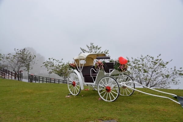 青青草原北票入口新完成的白色城堡,很有童話的意境,草地上還有造型可愛的綿羊裝置,這輛浪漫的花車想必是七夕情人節最應景的,清境果然是暑假期間親子和男女老少遊客來此渡假的首選。