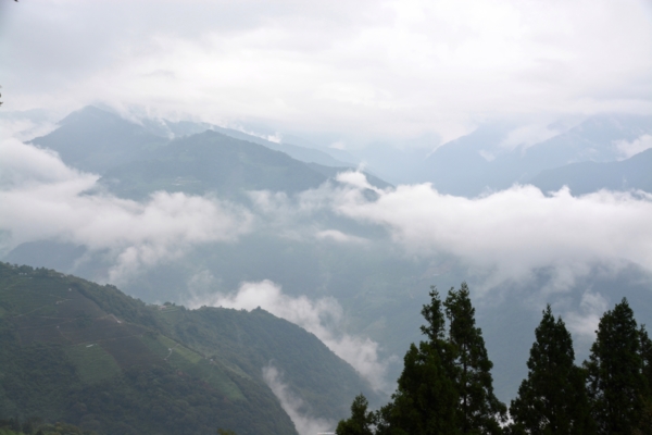 此時雨勢稍歇,俯看山下似乎已經放晴了,對面山巒被雲海層層環抱著,好似雲霧飄緲的仙境一般,讓人駐足不忍離去,拿起相機貪婪的不停按下快門,就讓眼前的美景留存在我的記憶卡裡。