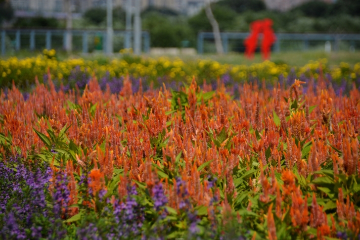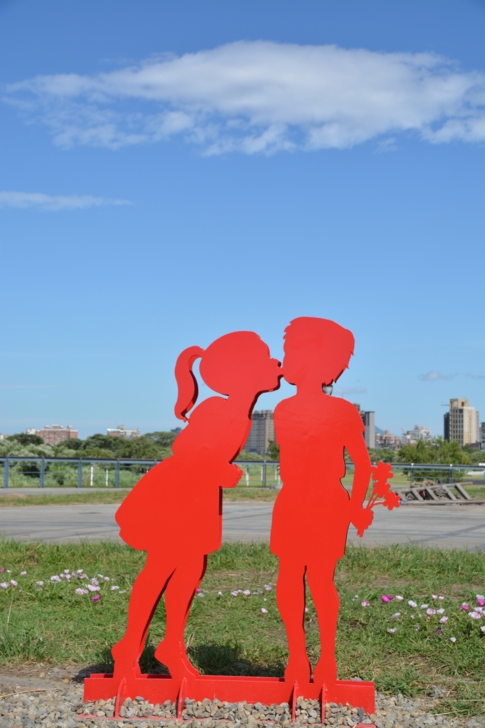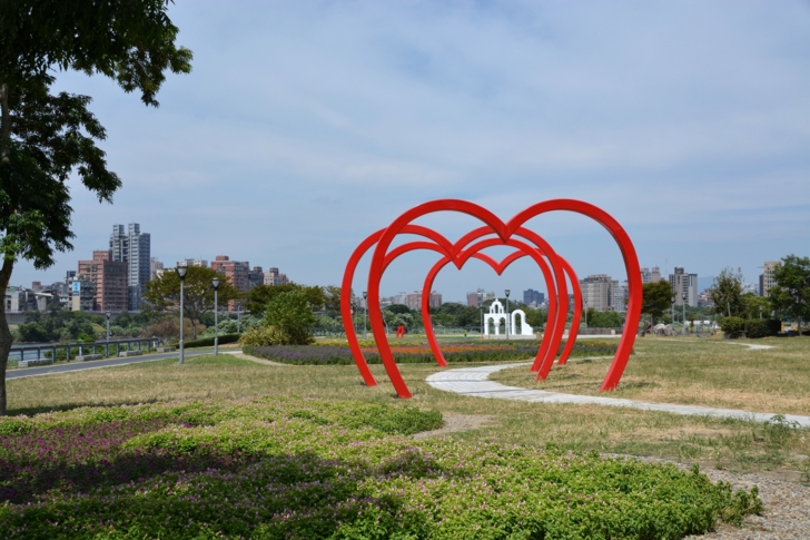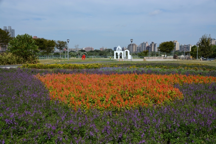為了配合這些浪漫藝術裝置,水利處也種植了天使花、夏堇、松葉牡丹、鼠尾草、羽狀雞冠花、千日紅、波斯菊.....等草花,繽紛的地景花海使得河濱公園更為美麗浪漫。